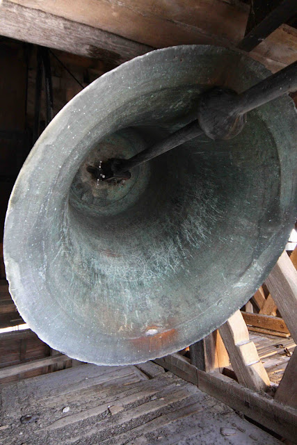 Un spectacle à la fois terrifiant et majestueux. Les bourdons s'envolaient, touchant presque le toit, avec une rapidité surprenante. Le beffroi tanguait sous la masse des deux Belles. Ici, on voit bien le battant frappant le haut de la pince.